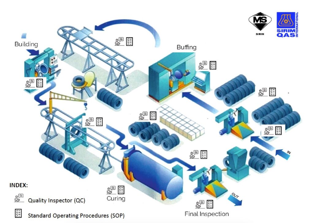 Each of the tyre we produced is stick with the SIRIM sticker. This stickers of ours has an unique serial number that we can trace the tyre background from who owns it, who process it and to whom we deliver it recorded in this serial number.